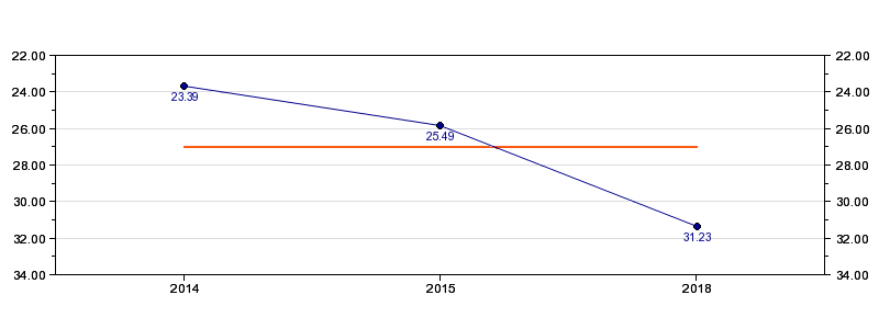| Forrige tid | 31.23 (2018) |