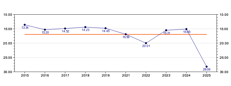 | Antall deltagelser | 10 (i perioden 2015 - 2025) |