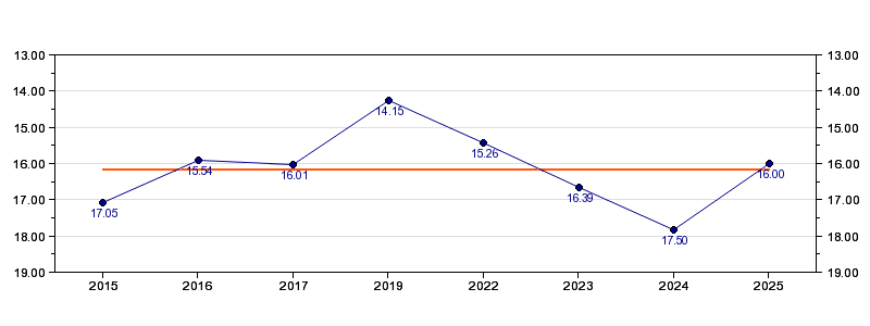 Antall deltagelser8 (i perioden 2015 - 2025)