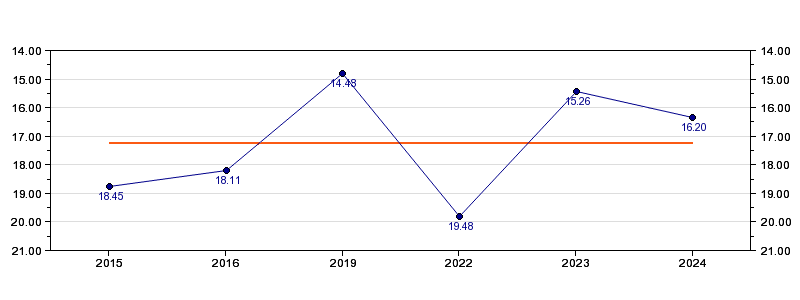 | Forrige tid | 16.20 (2024) |