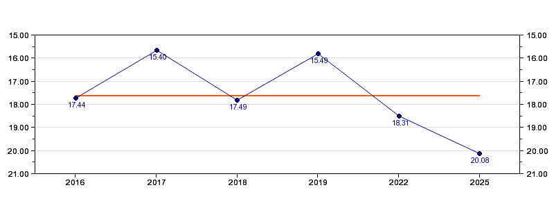 Antall deltagelser6 (i perioden 2016 - 2025)