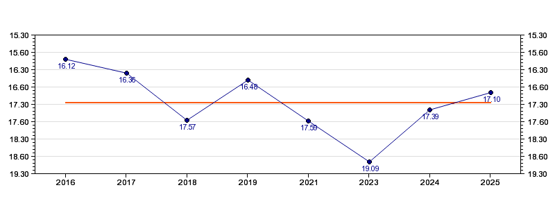 Antall deltagelser8 (i perioden 2016 - 2025)