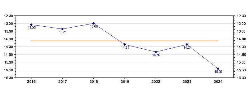 | Forrige tid | 15.55 (2024) |