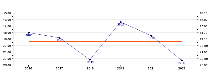 | Forrige tid | 22.16 (2022) |