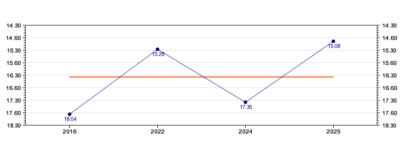 | Antall deltagelser | 4 (i perioden 2016 - 2025) |