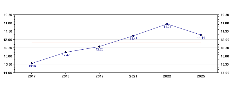 | Forrige tid | 11.44 (2025) |