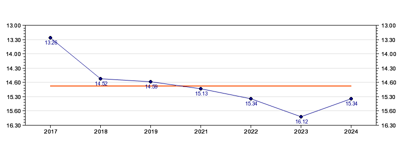 | Forrige tid | 15.34 (2024) |