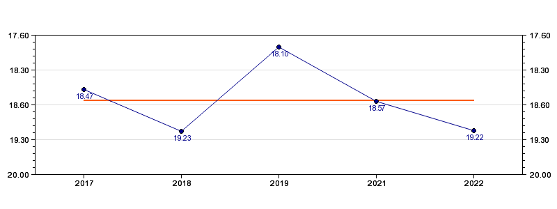 | Forrige tid | 19.22 (2022) |