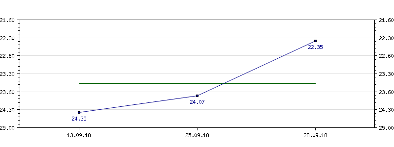| 13.09.2018 | 24.35 | 25.09.2018 | 24.07 | 28.09.2018 | 22.35 |