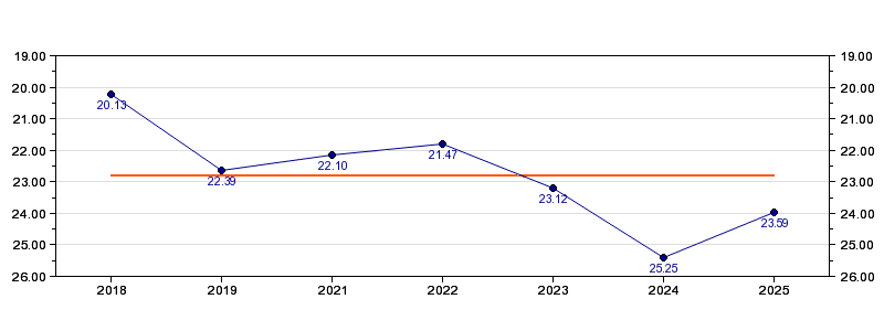Antall deltagelser7 (i perioden 2018 - 2025)