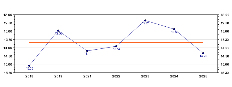 | 2025 | Kalkulator | 14:20 (1261 m/h) | 02:13 (1456 m/h, 115 %) | 06:42 (04:29, 1227 m/h, 97 %) | 12:22 (05:40, 1210 m/h, 95 %) | 14:20 (01:58, 1269 m/h, 100 %) |