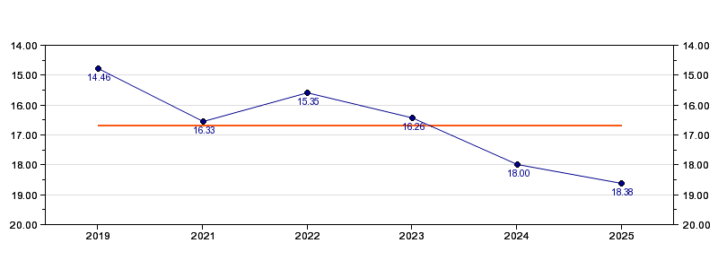 | Forrige tid | 18.38 (2025) |