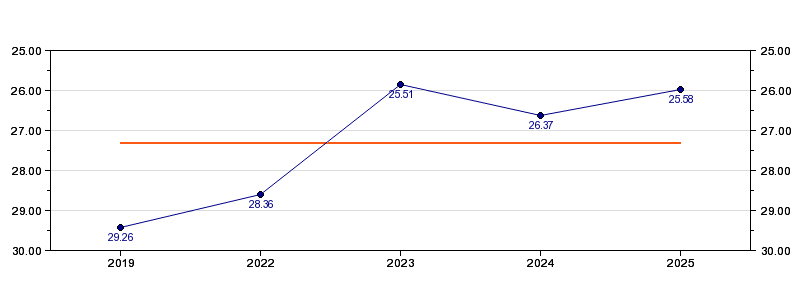 | Forrige tid | 25.58 (2025) |
