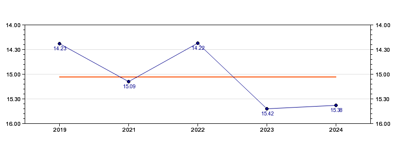 | Forrige tid | 15.38 (2024) |
