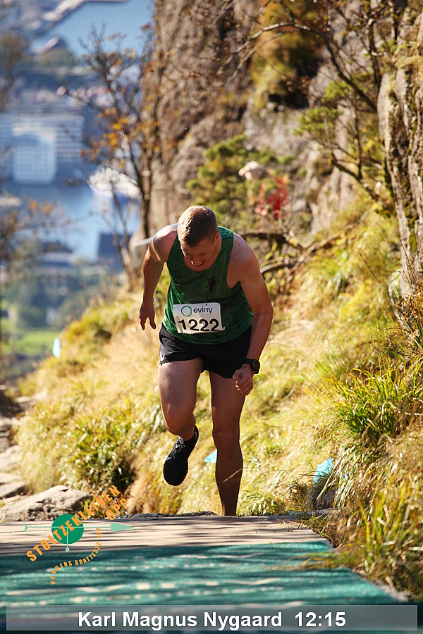 Da Thorbjørn Ludvigsen satte rekord på 7.54 i 2016 hadde han serien 95-99-95-115 og en gjennomsnittlig vertikal hastighet på 2286 meter/time. Kristin Størmer Steira hadde serien 107-96-95-107 da hun satte damerekord på 9:35 i 2013 med en gjennomsnittlig vertikal hastighet på 1884 meter/time. Til sammenligning hadde verdensrekordløpene på en vertikal kilometer (per 1/8/2014) hastighet på henholdsvis 1967 meter/time og 1630 meter/time - men da ble det altså løpt mer enn 3 ganger så langt.