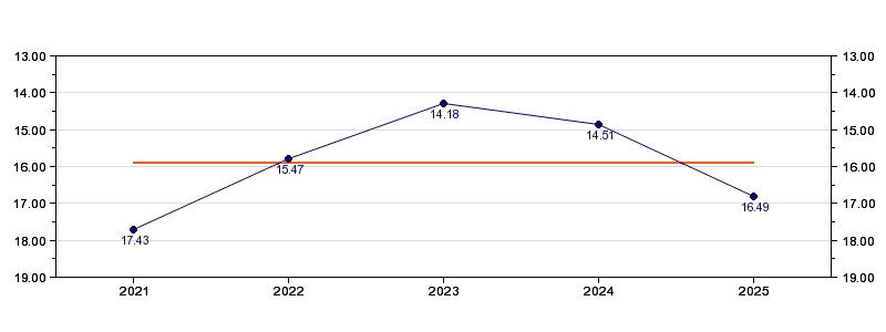| Forrige tid | 16.49 (2025) |
