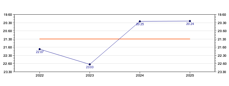| Forrige tid | 20.24 (2025) |