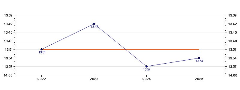| Forrige tid | 13.54 (2025) |