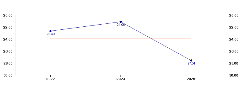 | Forrige tid | 27.34 (2025) |