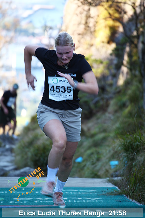 Da Thorbjørn Ludvigsen satte rekord på 7.54 i 2016 hadde han serien 95-99-95-115 og en gjennomsnittlig vertikal hastighet på 2286 meter/time. Kristin Størmer Steira hadde serien 107-96-95-107 da hun satte damerekord på 9:35 i 2013 med en gjennomsnittlig vertikal hastighet på 1884 meter/time. Til sammenligning hadde verdensrekordløpene på en vertikal kilometer (per 1/8/2014) hastighet på henholdsvis 1967 meter/time og 1630 meter/time - men da ble det altså løpt mer enn 3 ganger så langt.