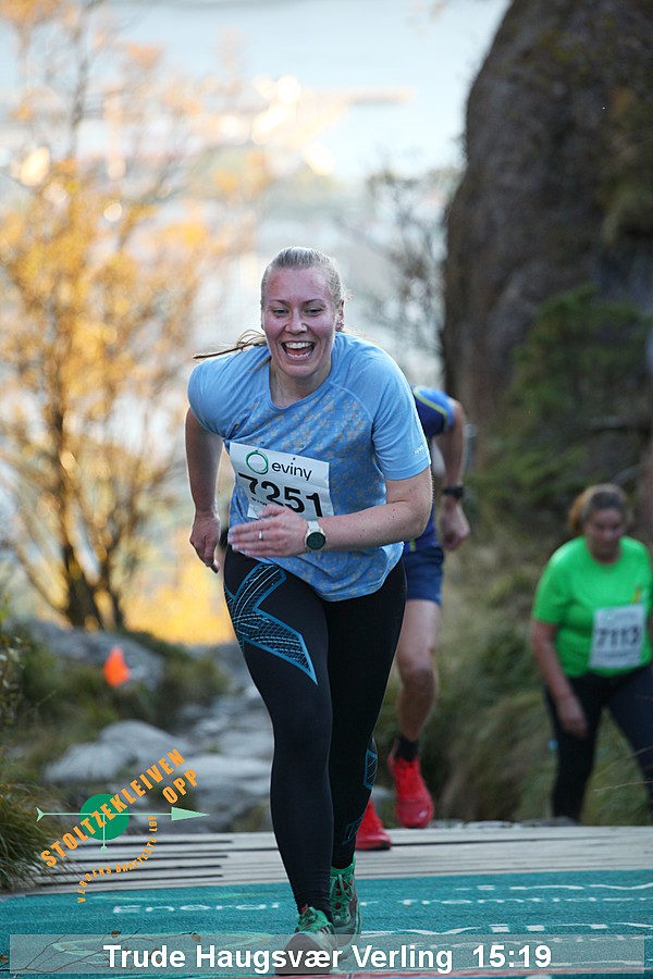 Da Thorbjørn Ludvigsen satte rekord på 7.54 i 2016 hadde han serien 95-99-95-115 og en gjennomsnittlig vertikal hastighet på 2286 meter/time. Kristin Størmer Steira hadde serien 107-96-95-107 da hun satte damerekord på 9:35 i 2013 med en gjennomsnittlig vertikal hastighet på 1884 meter/time. Til sammenligning hadde verdensrekordløpene på en vertikal kilometer (per 1/8/2014) hastighet på henholdsvis 1967 meter/time og 1630 meter/time - men da ble det altså løpt mer enn 3 ganger så langt.