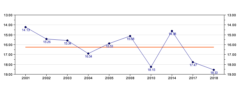| Antall deltagelser | 10 (i perioden 2001 - 2018) |