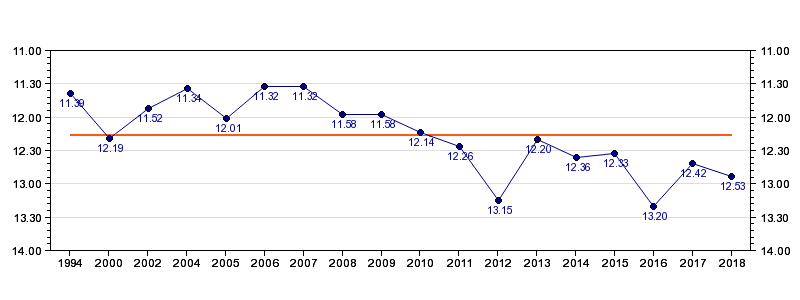 Antall deltagelser18 (i perioden 1994 - 2018)