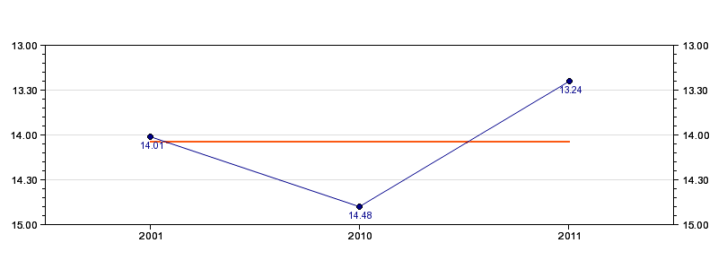 | Forrige tid | 13.24 (2011) |