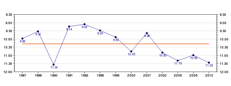 Antall deltagelser13 (i perioden 1987 - 2010)
