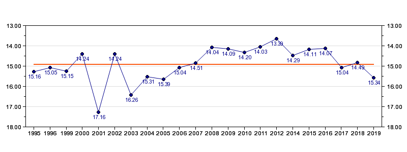| Antall deltagelser | 22 (i perioden 1995 - 2019) |