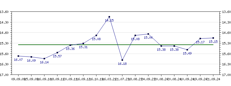 | 20.08.2024 | 15.38 | 10.09.2024 | 15.49 | 19.09.2024 | 15.17 | 21.09.2024 | 15.15 |