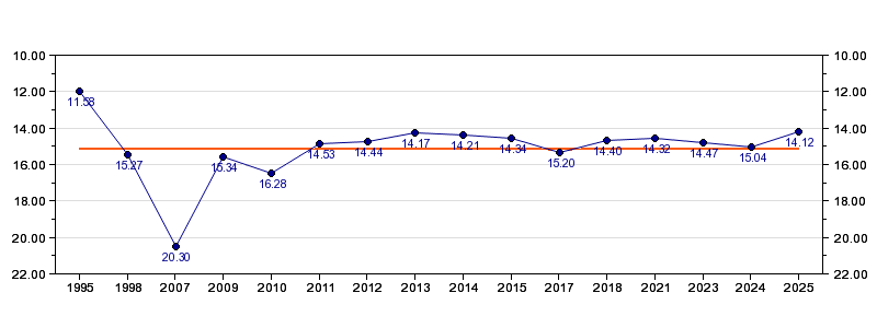 | Antall deltagelser | 16 (i perioden 1995 - 2025) |