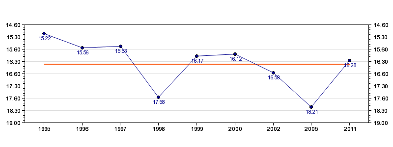 | Forrige tid | 16.28 (2011) |