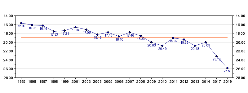 | Forrige tid | 25.50 (2019) |