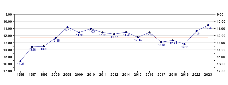 | Forrige tid | 10.30 (2023) |