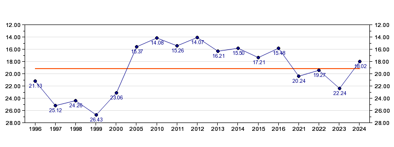 | Antall deltagelser | 17 (i perioden 1996 - 2024) |