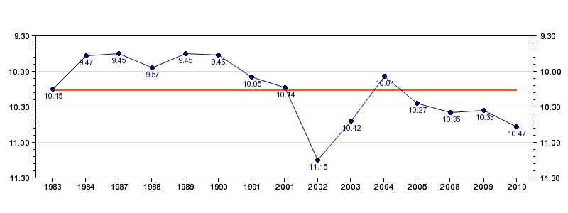 | Antall deltagelser | 15 (i perioden 1983 - 2010) |