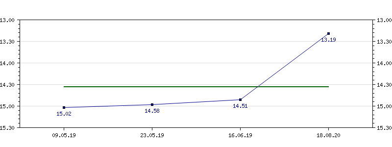 | 09.05.2019 | 15.02 | 23.05.2019 | 14.58 | 16.06.2019 | 14.51 | 18.08.2020 | 13.19 |