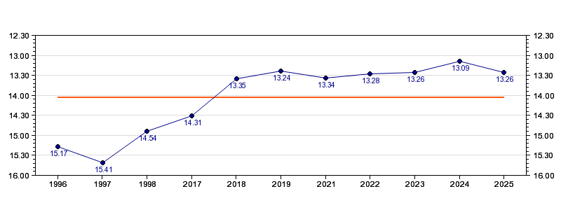 | Forrige tid | 13.26 (2025) |