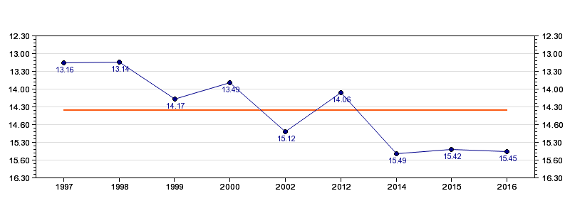 | Forrige tid | 15.45 (2016) |