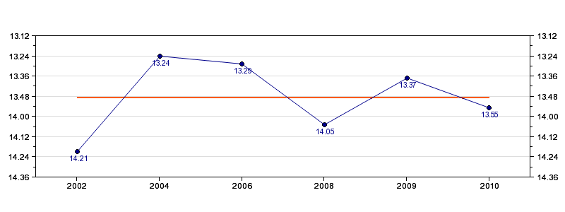 | Forrige tid | 13.55 (2010) |
