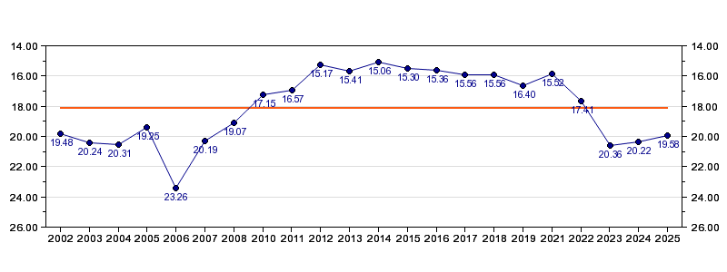 Antall deltagelser22 (i perioden 2002 - 2025)
