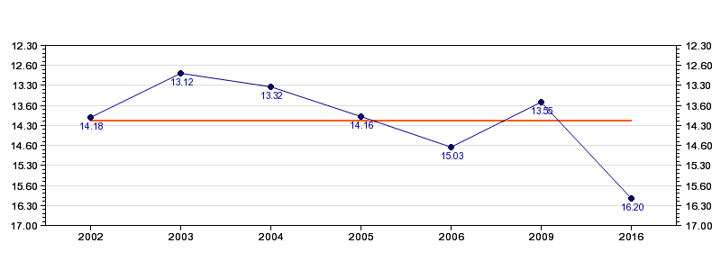 | Forrige tid | 16.20 (2016) |