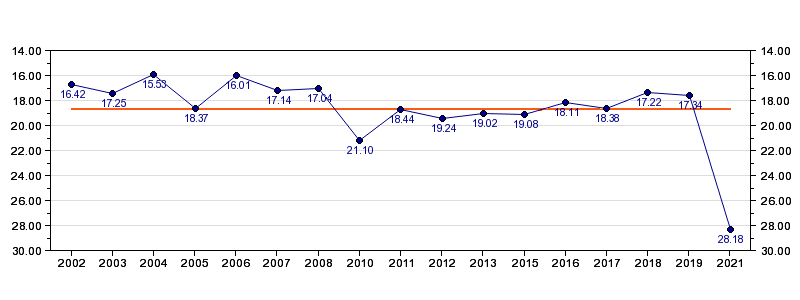 | Antall deltagelser | 17 (i perioden 2002 - 2021) |