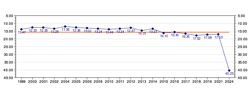 | Forrige tid | 40.25 (2024) |