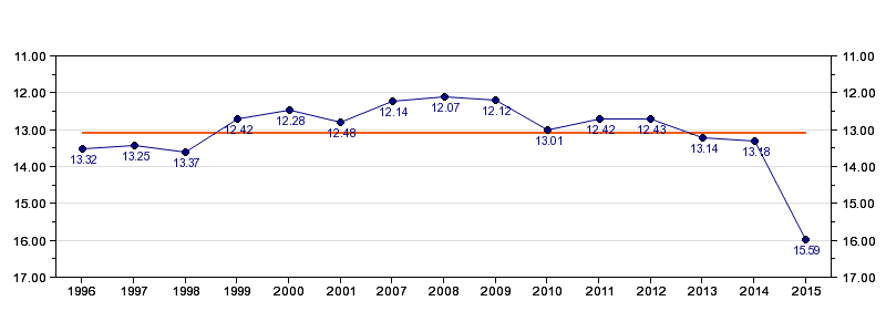 Antall deltagelser15 (i perioden 1996 - 2015)