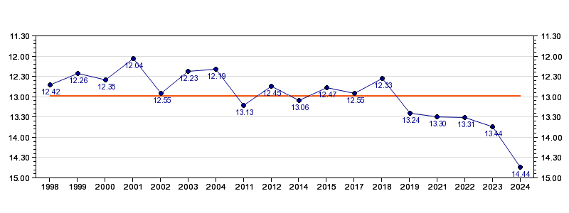 | Forrige tid | 14.44 (2024) |
