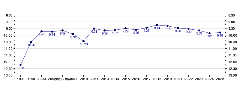 | Forrige tid | 09.48 (2025) |
