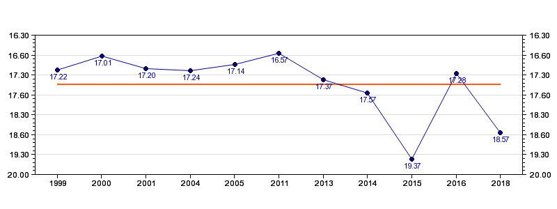 Antall deltagelser11 (i perioden 1999 - 2018)