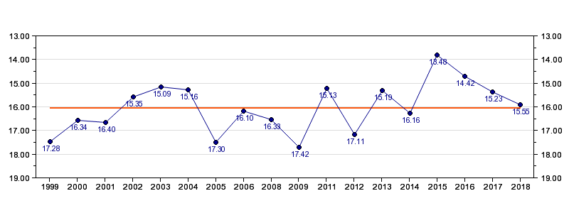 Antall deltagelser18 (i perioden 1999 - 2018)